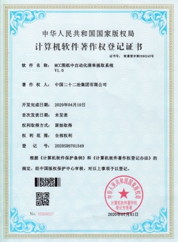 中國(guó)二十二冶集團(tuán)獲得一項(xiàng)國(guó)家計(jì)算機(jī)軟件著作權(quán)登記證書